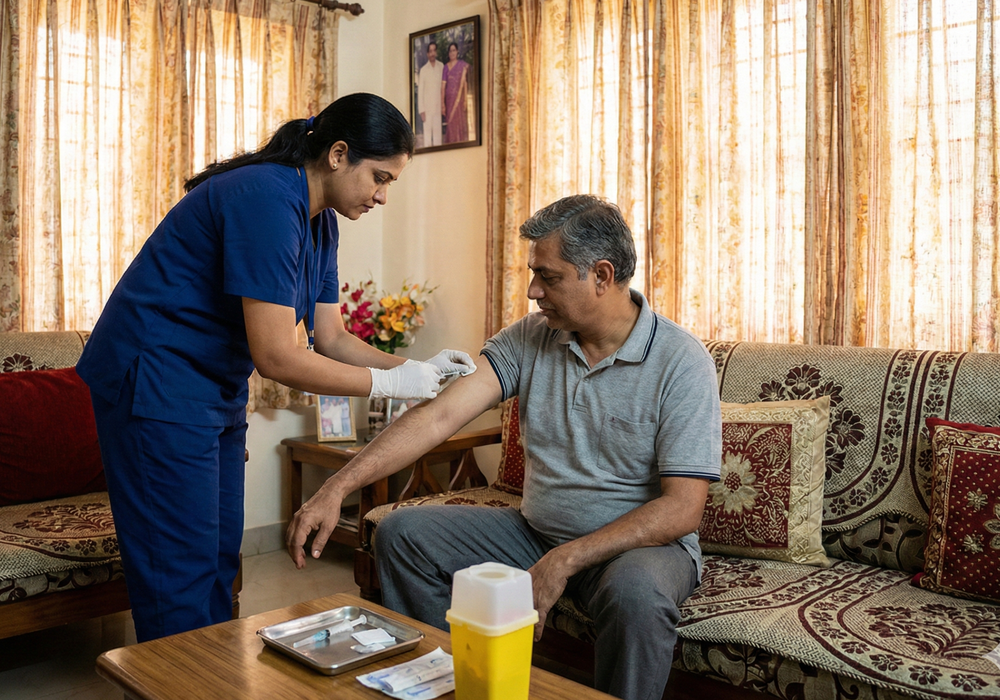 Expert nurses provide daily wound dressing, suture care, injections, IV support, and recovery monitoring — all performed hygienically at home.